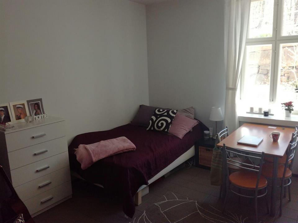 Bostaden är en möblerad enrummare, storlek ca 20 kvadratmeter. Pris: 500€ / mån + elektricitet enligt förbrukning. Värme ingår i hyran. Adress: Fabriksgatan, så nära till både Åbo Akademi och Åbo Universitet. Tvättstuga finns i källarvåningen och den får användas gratis. Se bilder: 1 och 2. För mer information kontakta mig per e-post: johanna.wide@abo.fi